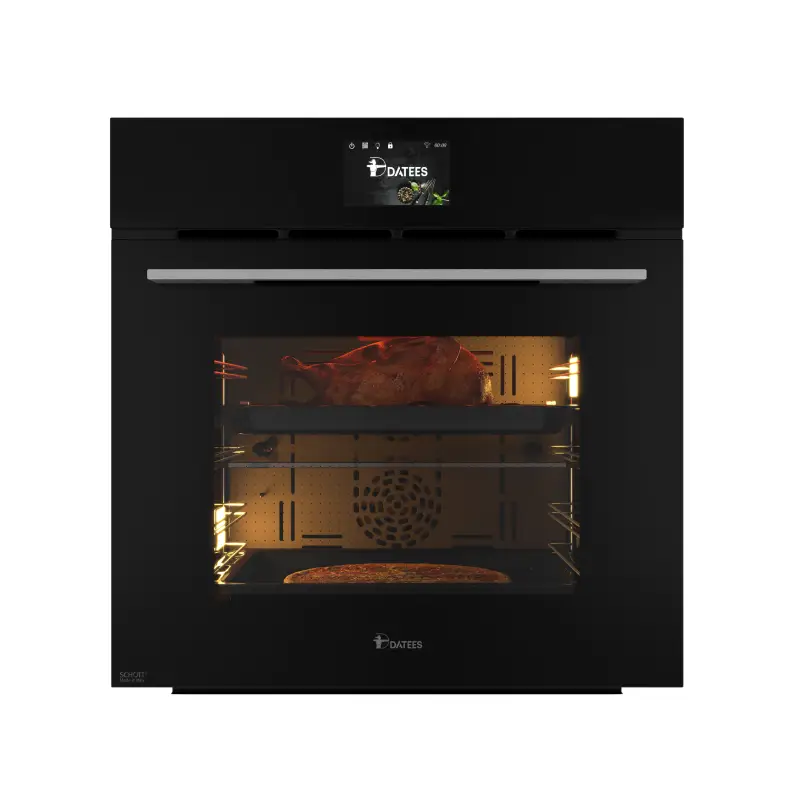 فر توکار داتیس مدل 669 با طراحی مدرن و مینیمال، بهراحتی با انواع دکوراسیون آشپزخانه هماهنگ میشود. استفاده از شیشه سکوریت مشکی مقاوم در برابر حرارت در کنار فریم فلزی باکیفیت، جلوهای لوکس به فضای آشپزخانه میبخشد.