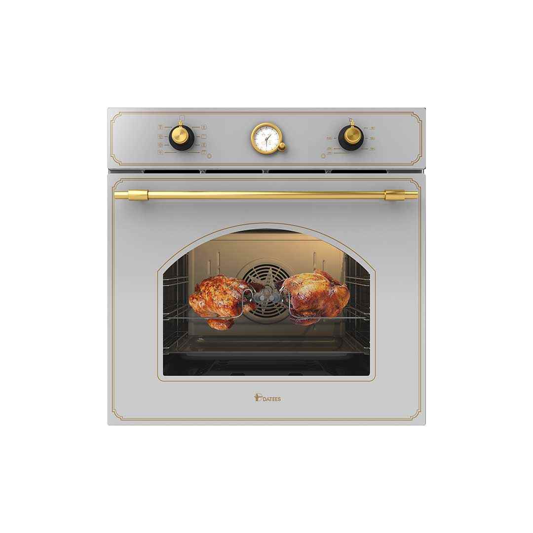 فر DF-655 کاملاً برقی است: سیستم گرمایش از المنت برقی شامل المنت بالا، پایین و دور، برای پخت یکنواخت غذا استفاده میشود. این طراحی هم ایمنی بیشتری دارد و هم نصب آسانتری نسبت به فر ترکیبی (گاز و برق) دارد.